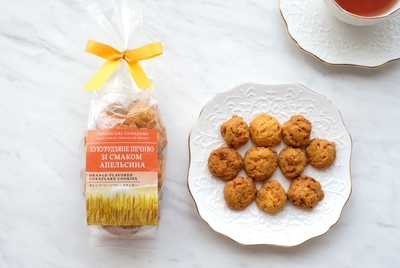 【オレンジ・コーンフレーククッキー】オレンジの香りがふんわり広がるシリアルクッキーは、朝の光に染まる広大な麦畑を写しとったような味わいです。